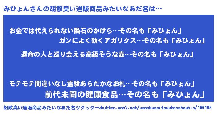 | 欧米人風あだ名 | 『みひょんクリステル』 |