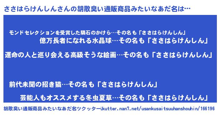 | 欧米人風あだ名 | 『トリンドルささはらけんしん』 |