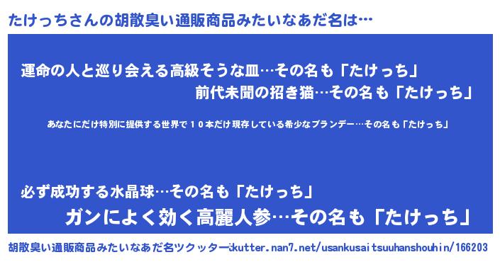 | 意味不明あだ名 | 『住所不定無職たけっち(91歳)』 |