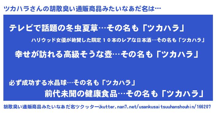 | 恥ずかしいあだ名 | 『ツカっちょ』『ツカハラデラックス』 |