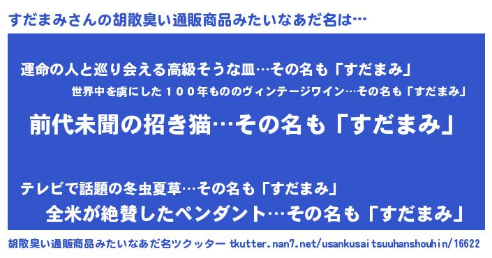 | ヘコむあだ名 | 『すだまみ(小並感)』『レバニラ』 |