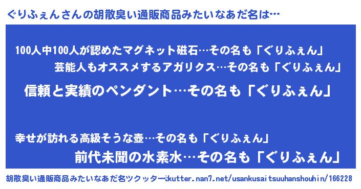 | 意味不明あだ名 | 『とにかく怪しいぐりふぇん』 |