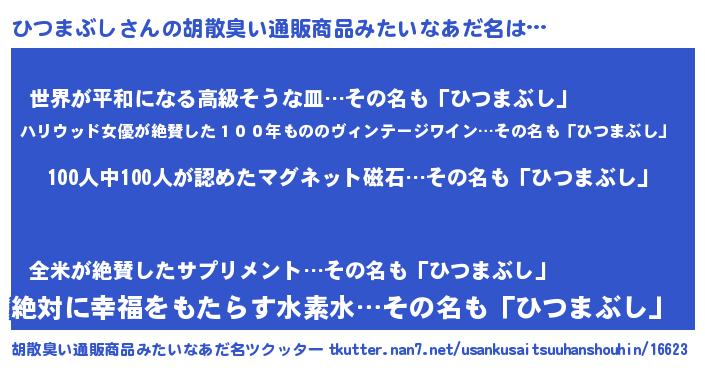 | ヒーロー風カッコイイあだ名 | 『友情の使者ひつまぶし』『仮面ヒツダー』 |