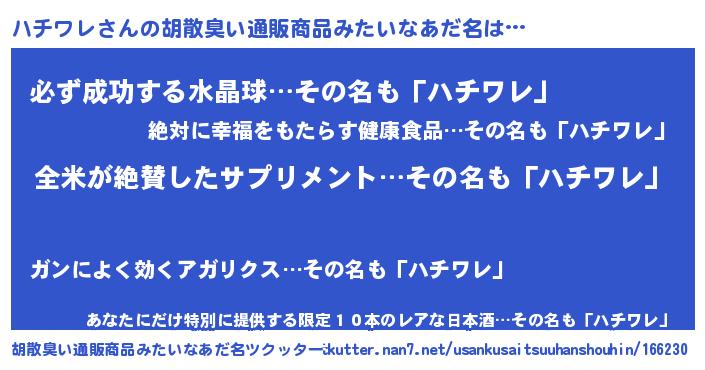 | ヘコむあだ名 | 『ハチお』『ハチにー』『レバニラ』 |