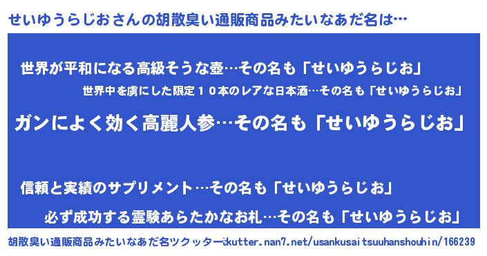 | 意味不明あだ名 | 『自称せいゆうらじお』 |