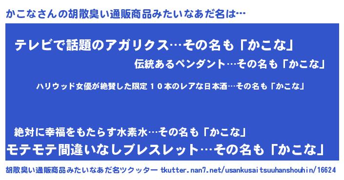 | 意味不明あだ名 | 『住所不定無職かこな(43歳)』『自称かこな』 |