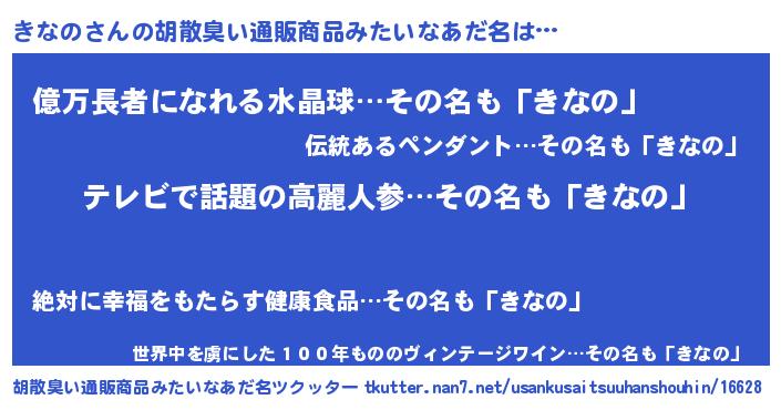 | 男性向けラノベタイトル風あだ名 | 『Re:きなのから始める異世界生活』 |