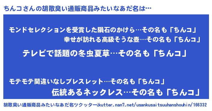 | 意味不明あだ名 | 『自称ちんコ』『眠気覚ましガムちんコ味』 |