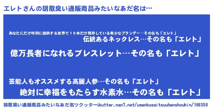 | 意味不明あだ名 | 『ペロリンエレト』『永久保存エレト』 |