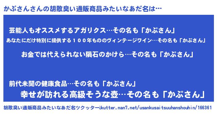 | ヘコむあだ名 | 『豆乳』『かぷさん(爆)』『かぷお』 |