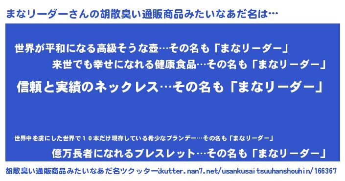 | 意味不明あだ名 | 『とにかく怪しいまなリーダー』 |
