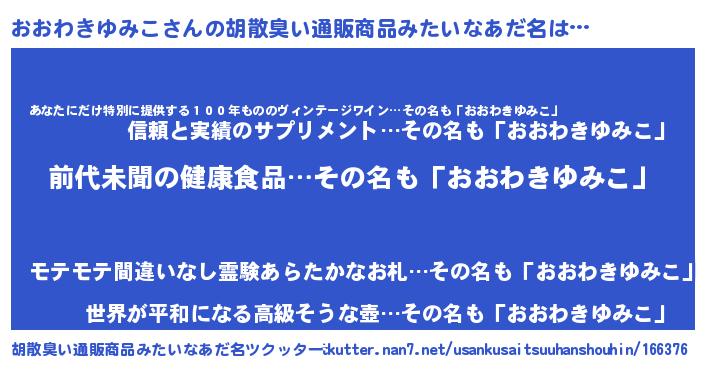 | 意味不明あだ名 | 『永久保存おおわきゆみこ』 |
