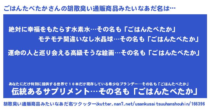 | 恥ずかしいあだ名 | 『ごはっちょ』『ごはちん』 |