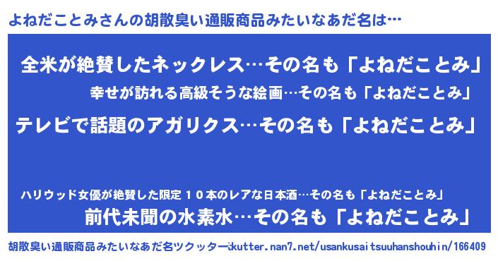 | 意味不明あだ名 | 『自称よねだことみ』 |