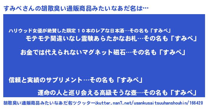 | 意味不明あだ名 | 『なめこ科すみぺ属』『ペロリンすみぺ』 |