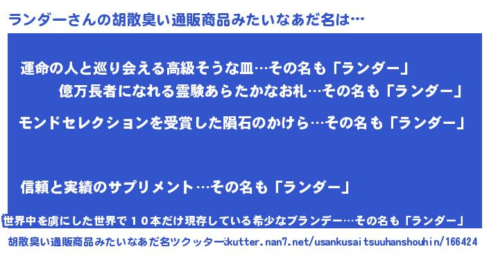 | 伝説のあだ名 | 『救世主となる錬金術士ランダー』 |