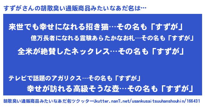 | 意味不明あだ名 | 『ヨモギ科すずが属』『永久保存すずが』 |