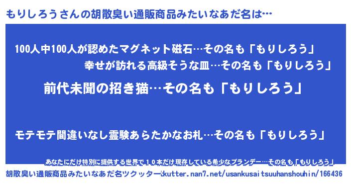 | 意味不明あだ名 | 『永久保存もりしろう』 |