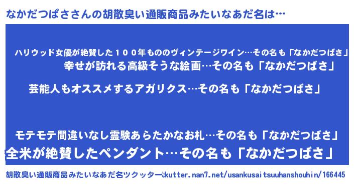 | 意味不明あだ名 | 『自称なかだつばさ』 |