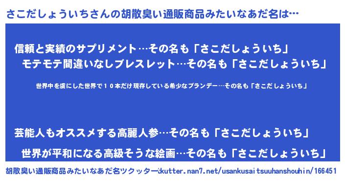 | ヘコむあだ名 | 『さこっちょ』『酢こんぶ』 |