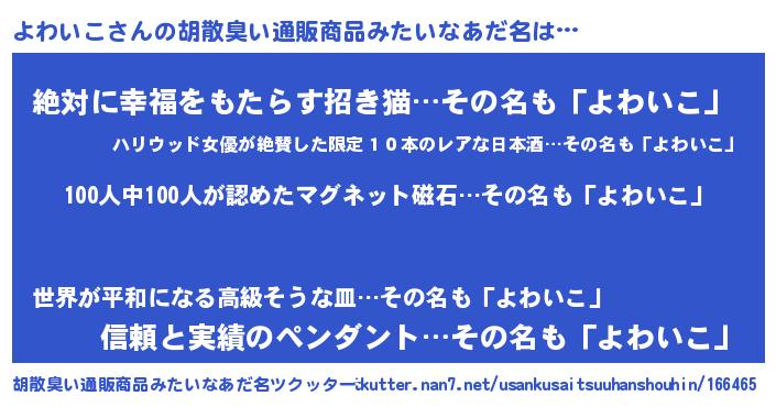 | ピコ太郎風あだ名 | 『ヨヨ太郎』『ピコヨ郎』『ヨワ六郎』 |