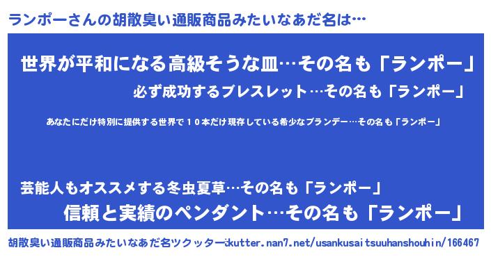 | ポケモン風あだ名 | 『ランキング』『ラーンイ』 |