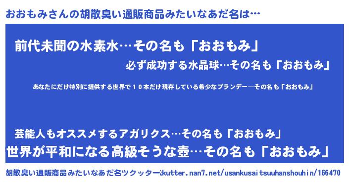| ヘコむあだ名 | 『おおもみ(苦笑)』『酢こんぶ』 |