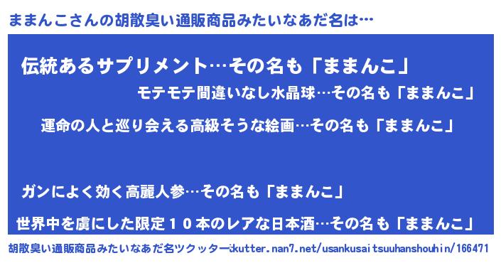 | 肩書あだ名 | 『ままんこ総理大臣』『ままんこ団長』 |