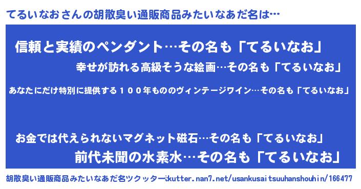 | ヘコむあだ名 | 『てるお』『てるいなお(苦笑)』 |