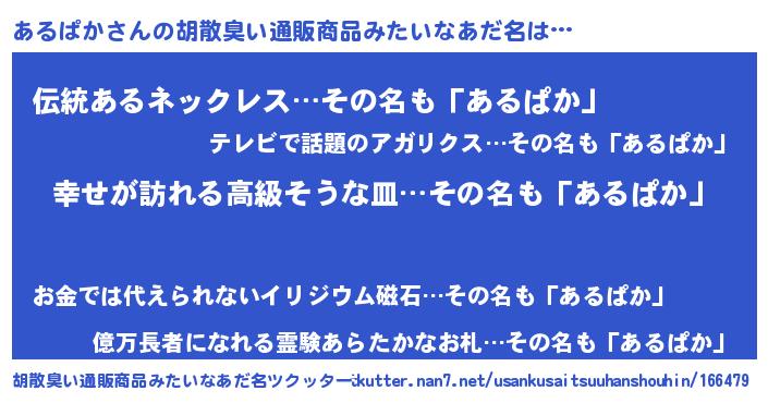 | 意味不明あだ名 | 『あるぱかフォーエバー』『自称あるぱか』 |