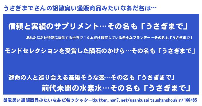 | ヒーロー風カッコイイあだ名 | 『天空の使者うさぎまで』『黄金騎士ウサ』 |
