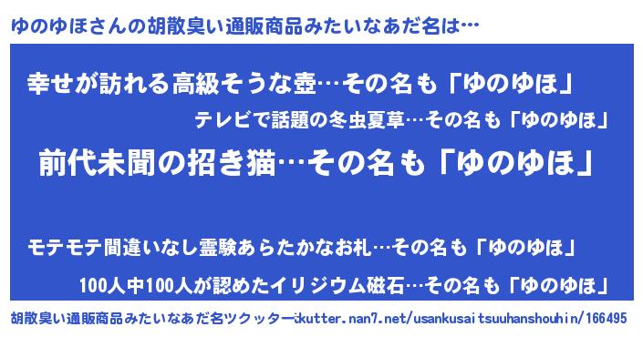 | 意味不明あだ名 | 『永久保存ゆのゆほ』『ニラ科ゆのゆほ属』 |