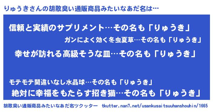 | 意味不明あだ名 | 『りゅうきフォーエバー』『自称りゅうき』 |