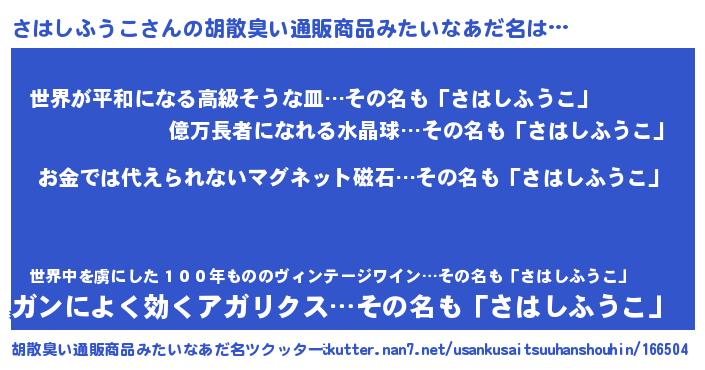 | ヒーロー風カッコイイあだ名 | 『慈愛の使者さはしふうこ』 |