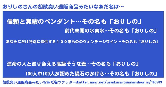 | 意味不明あだ名 | 『住所不定無職おりしの(12歳)』 |