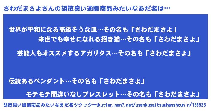 | 意味不明あだ名 | 『自称さわだまさよ』 |