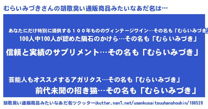 | ヘコむあだ名 | 『むらを』『むらいみづき(笑)』 |