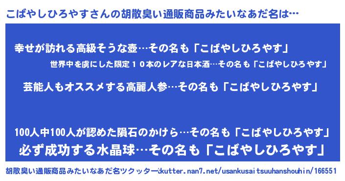 | 意味不明あだ名 | 『自称こばやしひろやす』 |