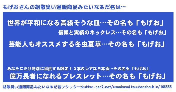 | ヒーロー風カッコイイあだ名 | 『究極戦士モゲオ』『ウルトラもげおマン』 |