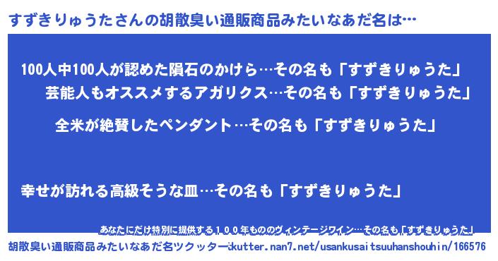 | 意味不明あだ名 | 『とにかく怪しいすずきりゅうた』 |