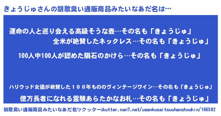 | 意味不明あだ名 | 『眠気覚ましガムきょうじゅ味』 |