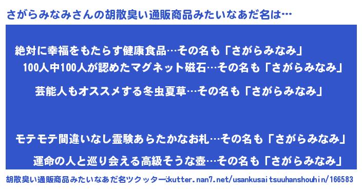 | 意味不明あだ名 | 『自称さがらみなみ』 |