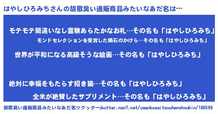 | 男性向けラノベタイトル風あだ名 | 『転生したらはやしひろみちだった件』 |