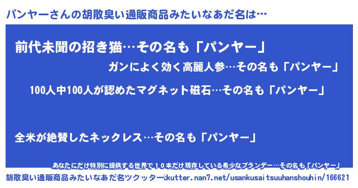 | ヒーロー風カッコイイあだ名 | 『正義の使者パンヤー』『ネオパンヤー』 |