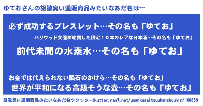 | 意味不明あだ名 | 『永久保存ゆてお』『エリンギ科ゆてお属』 |