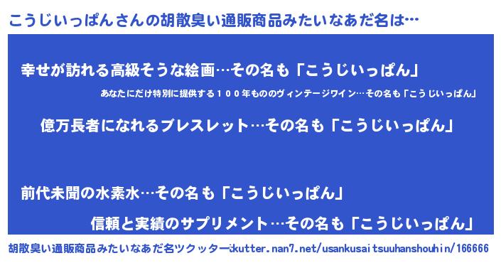 | 男性向けラノベタイトル風あだ名 | 『コウジイッパンアートオンライン』 |