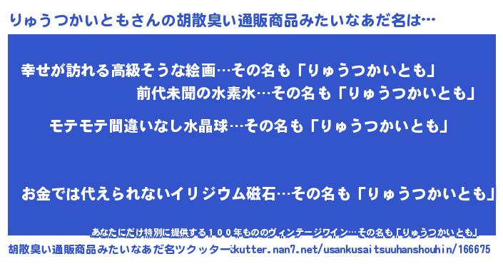 | ヒーロー風カッコイイあだ名 | 『スーパーリュウツカイトモ』 |