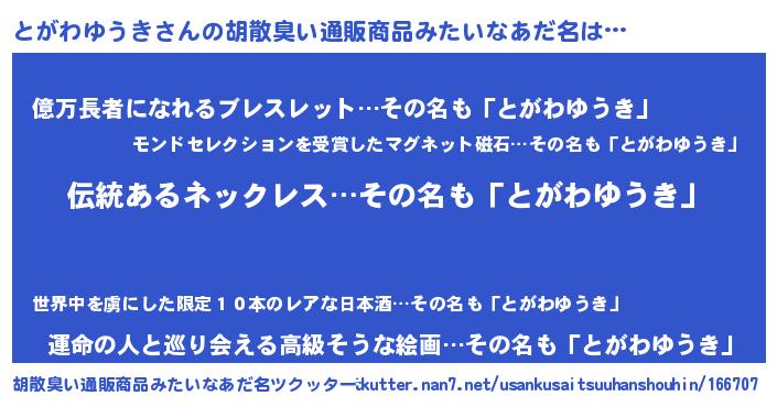 | 意味不明あだ名 | 『とにかく怪しいとがわゆうき』 |