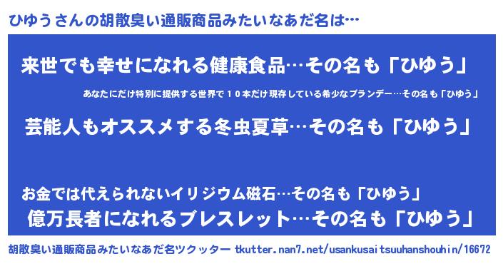 | ヘコむあだ名 | 『ひゆう(震え声)』『ひゆにゅー』 |
