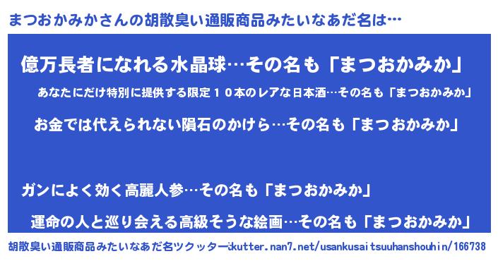 | ヒーロー風カッコイイあだ名 | 『愛の使者まつおかみか』『仮面マツダー』 |